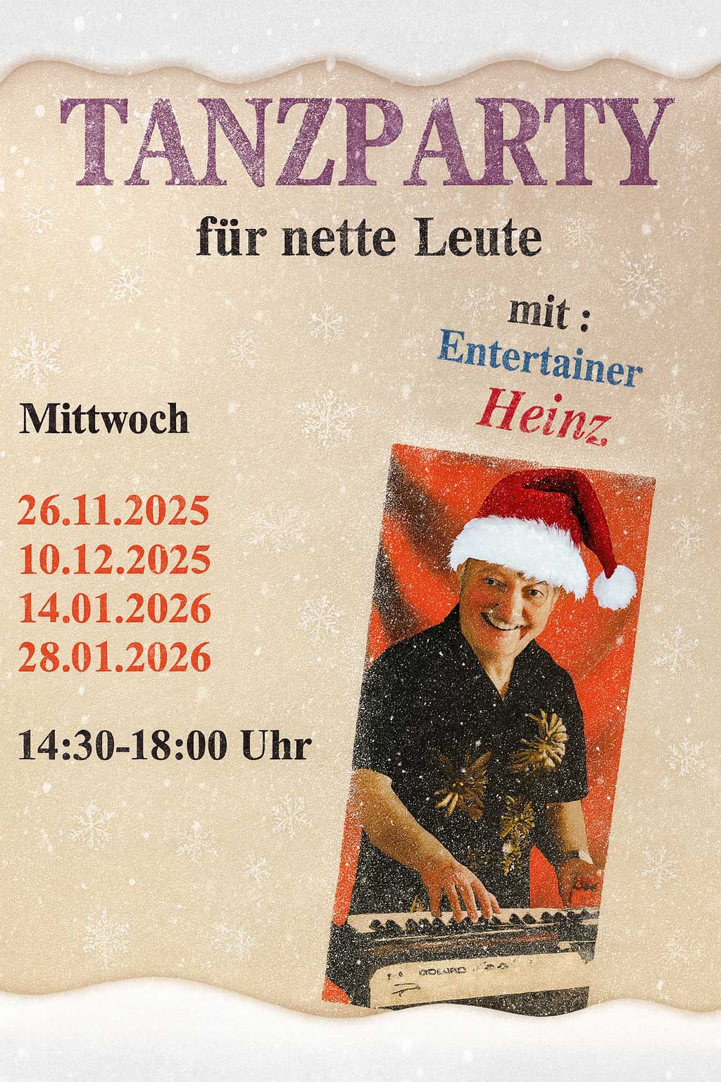 - Jeden Mittwoch, ab 14:30 Uhr bringt Alleinunterhalter Heinz Schwung in die Bude.
